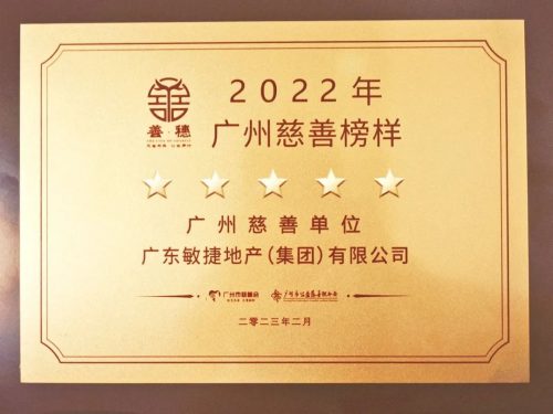 ▲敏捷集团获评“广州五星慈善捐赠单位”